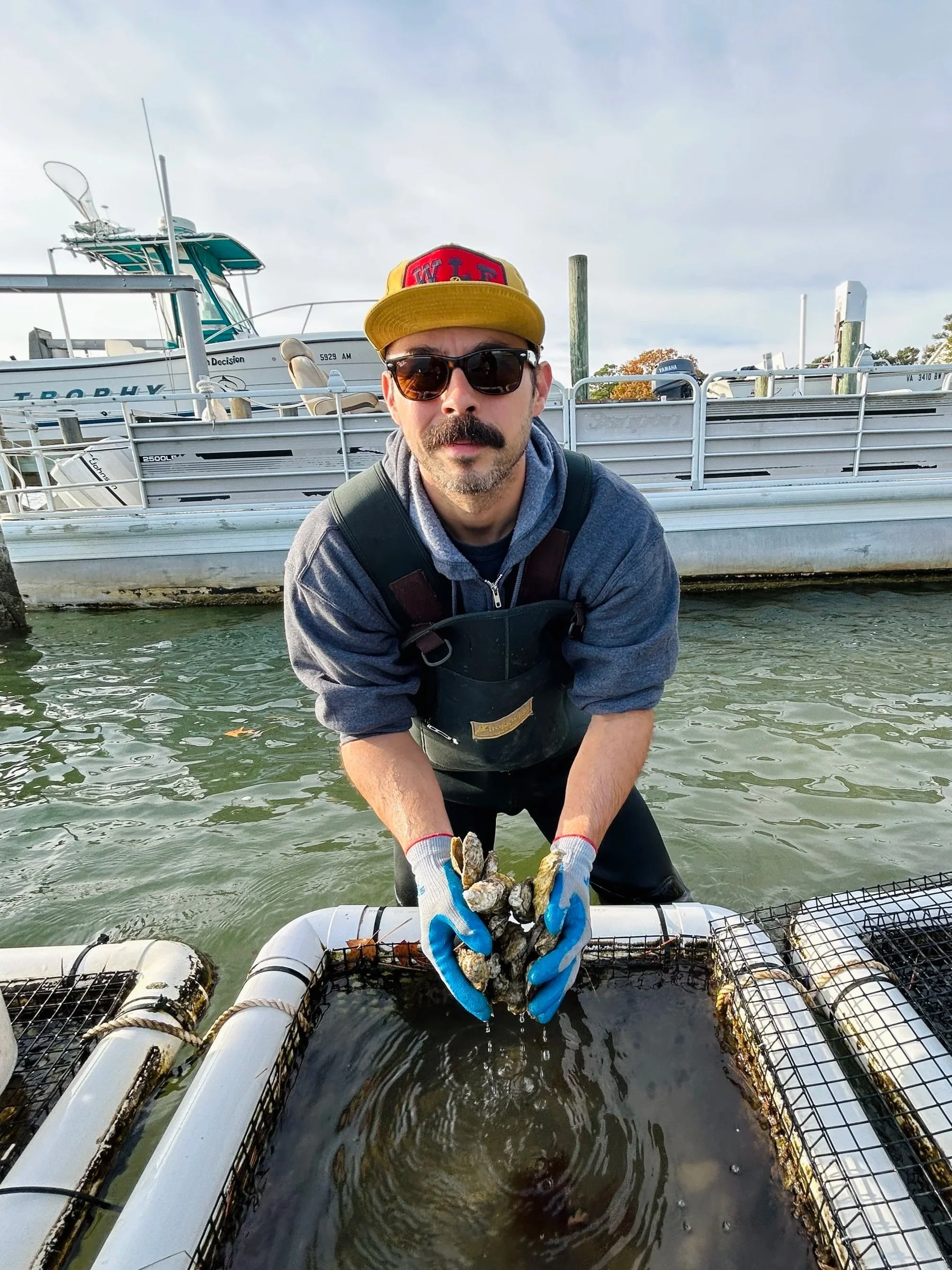 When he’s not farming oysters, you’ll probably find him hosting shows at @bellwether_garage, his DIY music venue in Church Hill. For Grant, life on the bay and music share the same rhythm - a mix of hard work, heart, and a reason to celebrate.