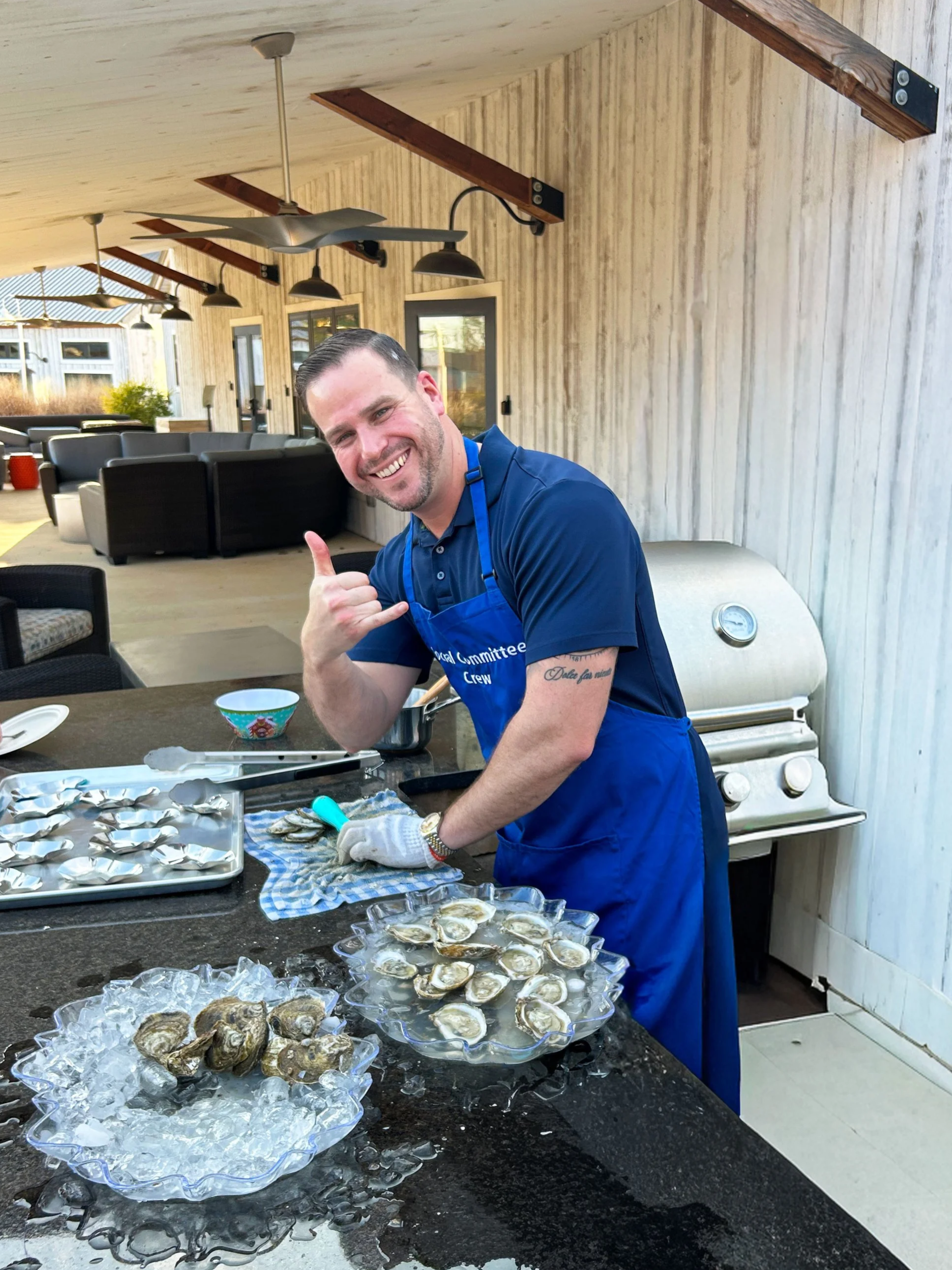 When he’s not slinging oysters, you’ll likely find him enjoying a glass of wine with friends, family, and his dog, Bocelli. Because for him, it’s not just about oysters; it’s about bringing people together, one shuck at a time.